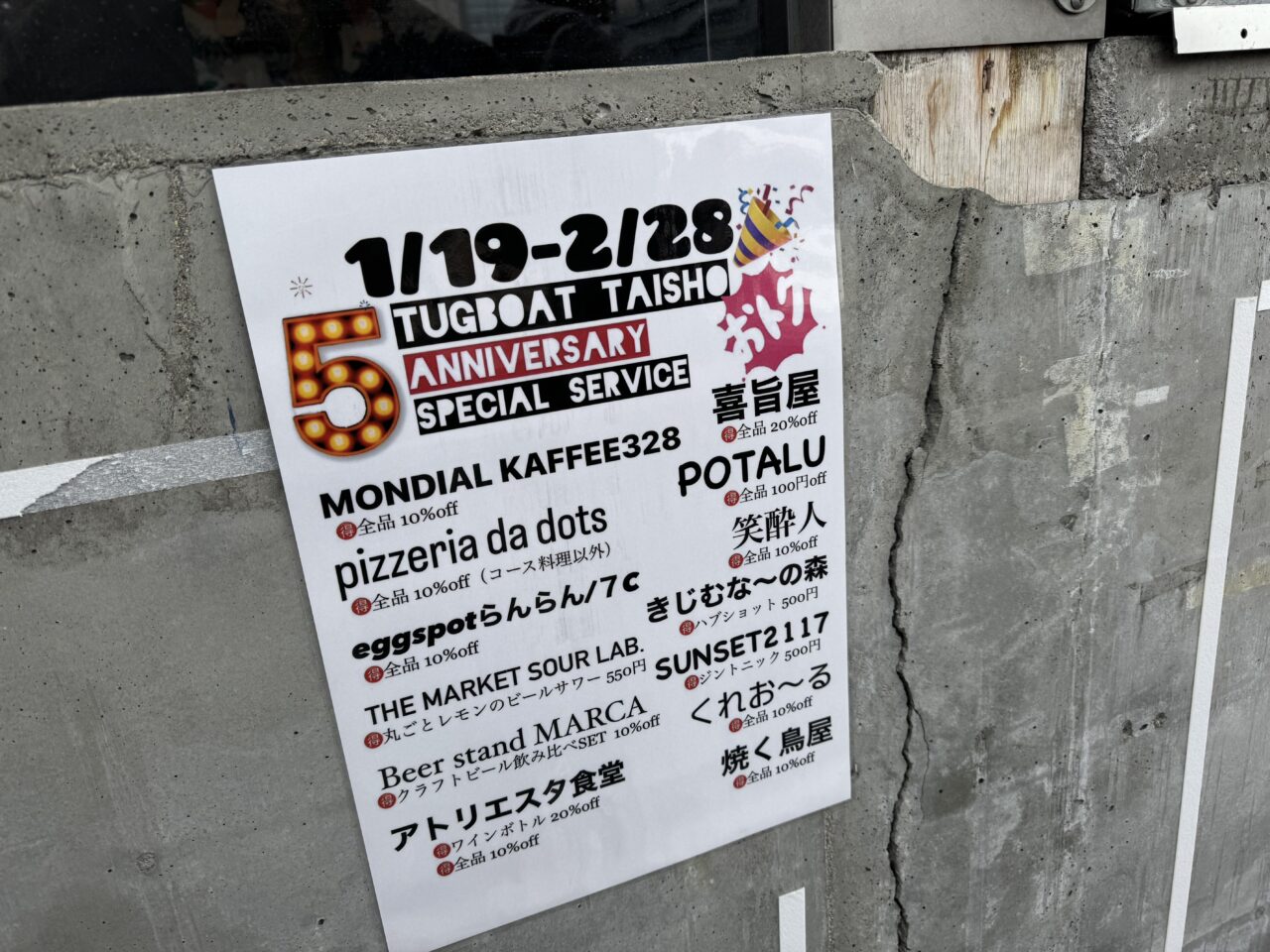 【大阪市西区】タグボート大正さんが5周年を迎えられたそうです!