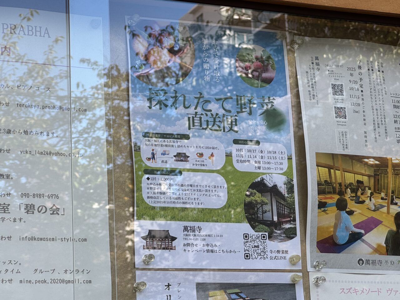 【大阪市西区】南堀江1丁目の萬福寺さんで有機野菜の受け取りができるそうです(o^^o)