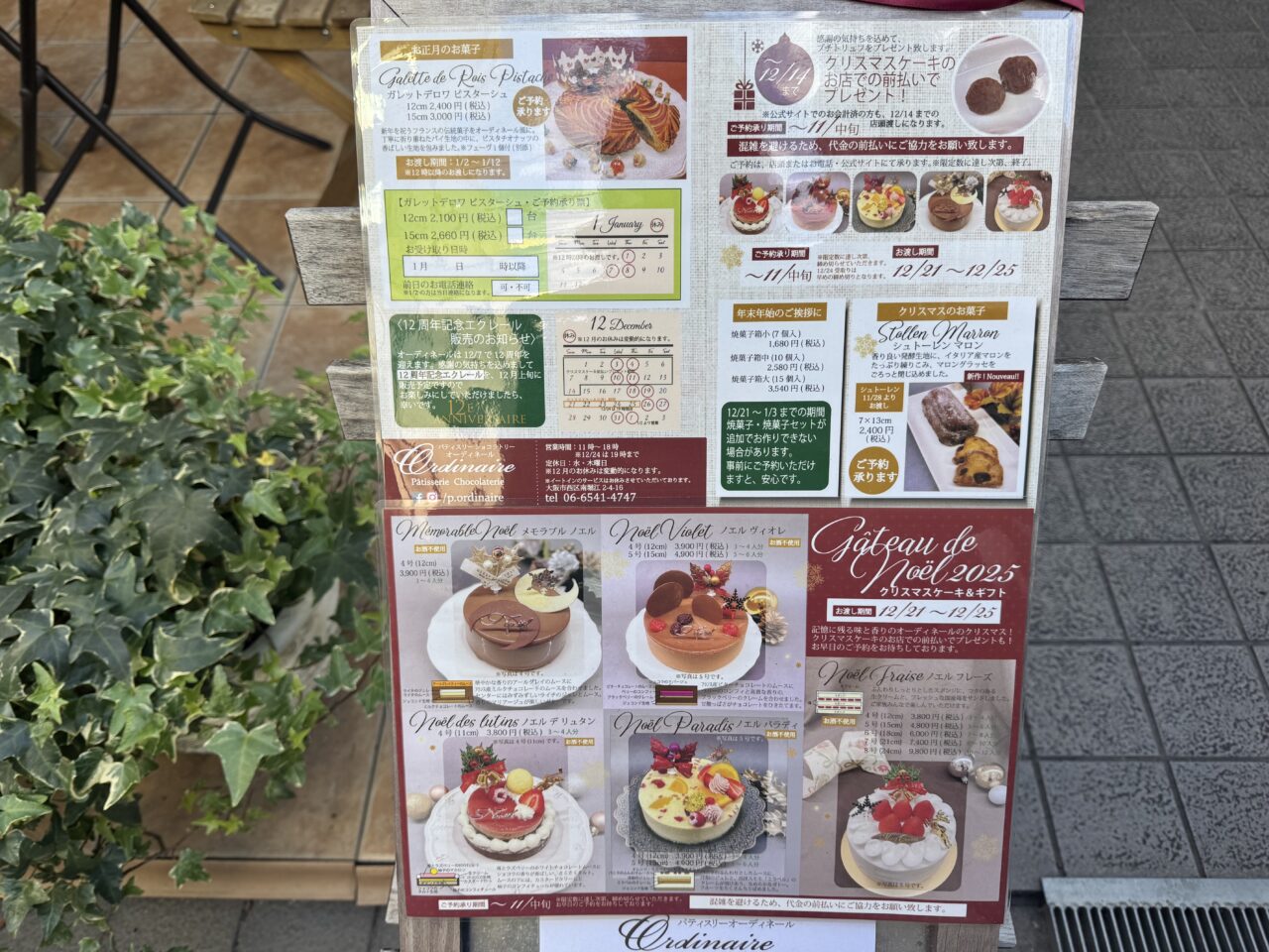 南堀江2丁目のパテスリーショコラテール オーディネールさんでクリスマスケーキの予約などが始まっていました(^^)