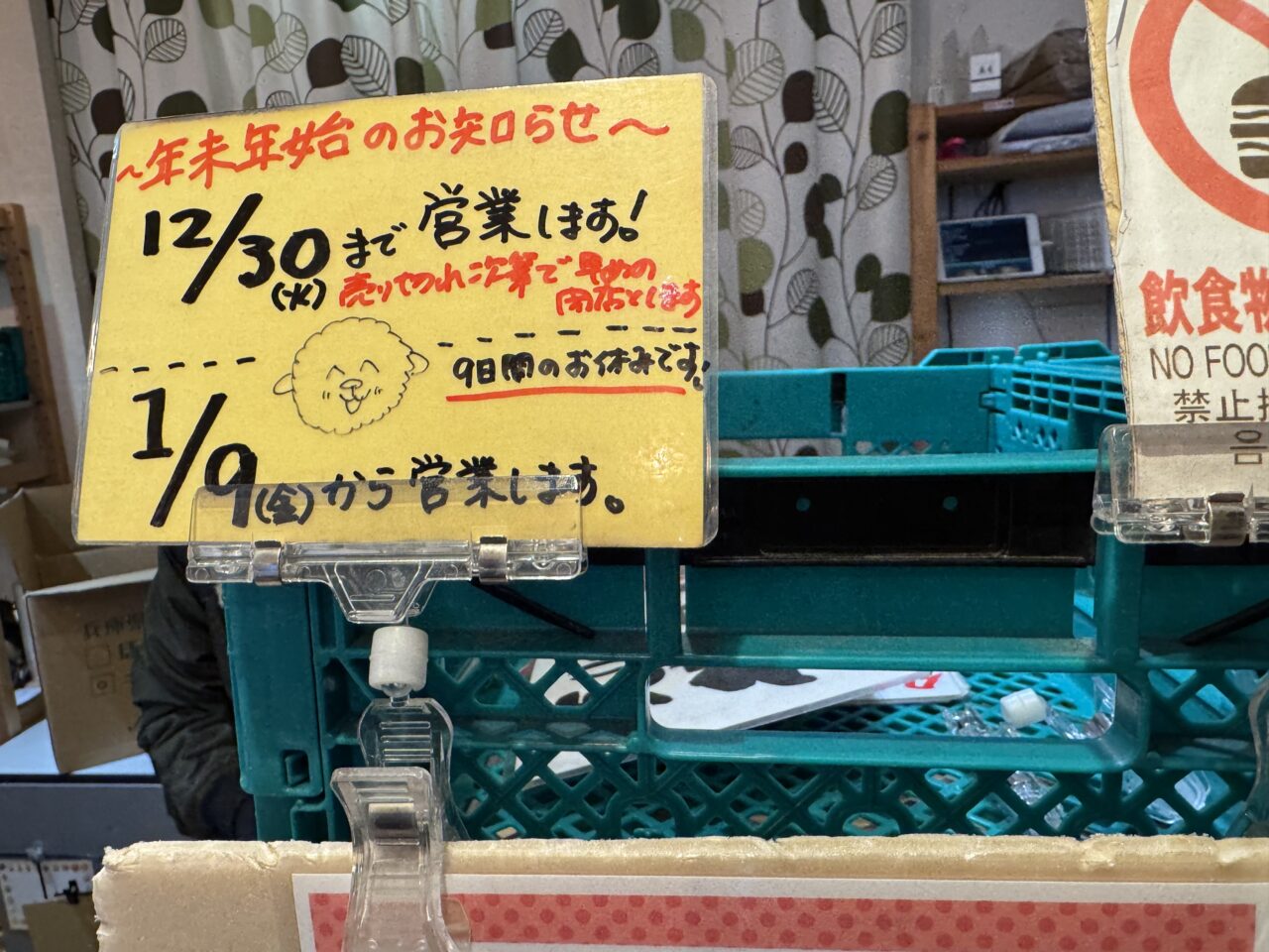 明日、2025年12月30日が年内最後の営業日で売り切れ次第で早く閉店されるかもしれませんが、皆さまも是非お立ち寄りしてみて下さい♡
