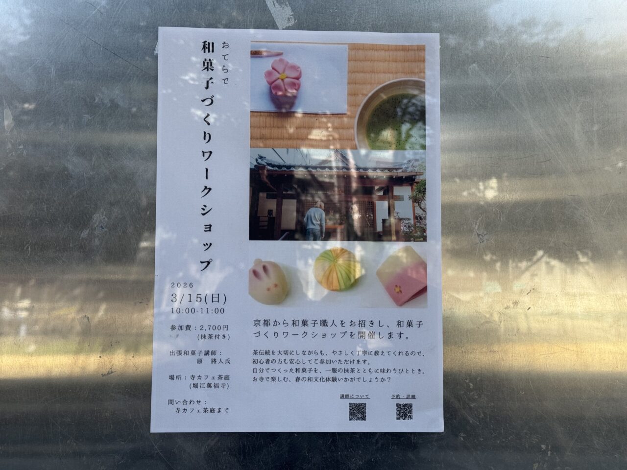 南堀江1丁目にある萬福寺さんで和菓子作りのワークショップが2026年3月15日 (日)に開催されます。