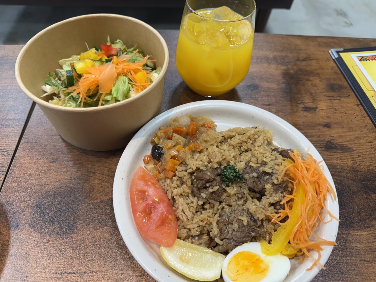 注文したのは万博でも食べたマフェとアフリカの炊き込みご飯チェブヤップ!
