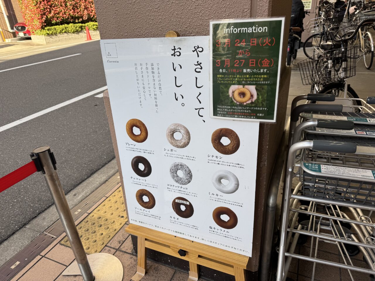 新町2丁目のライフ西大橋店さんで無添加ドーナツのflorestaさんが出店中です。